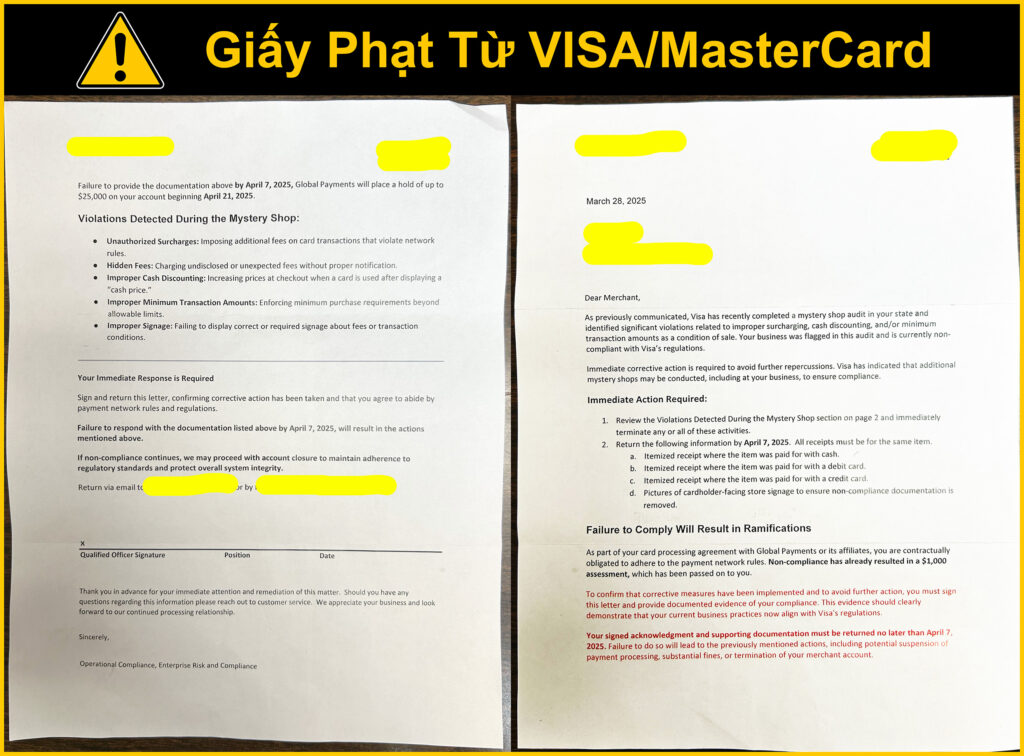Rất nhiều tiệm chỉ vì không hiểu rõ quy định đã bị Visa/MasterCard phạt hàng ngàn đô, thậm chí bị ngưng hoạt động tài khoản nhận thanh toán.
