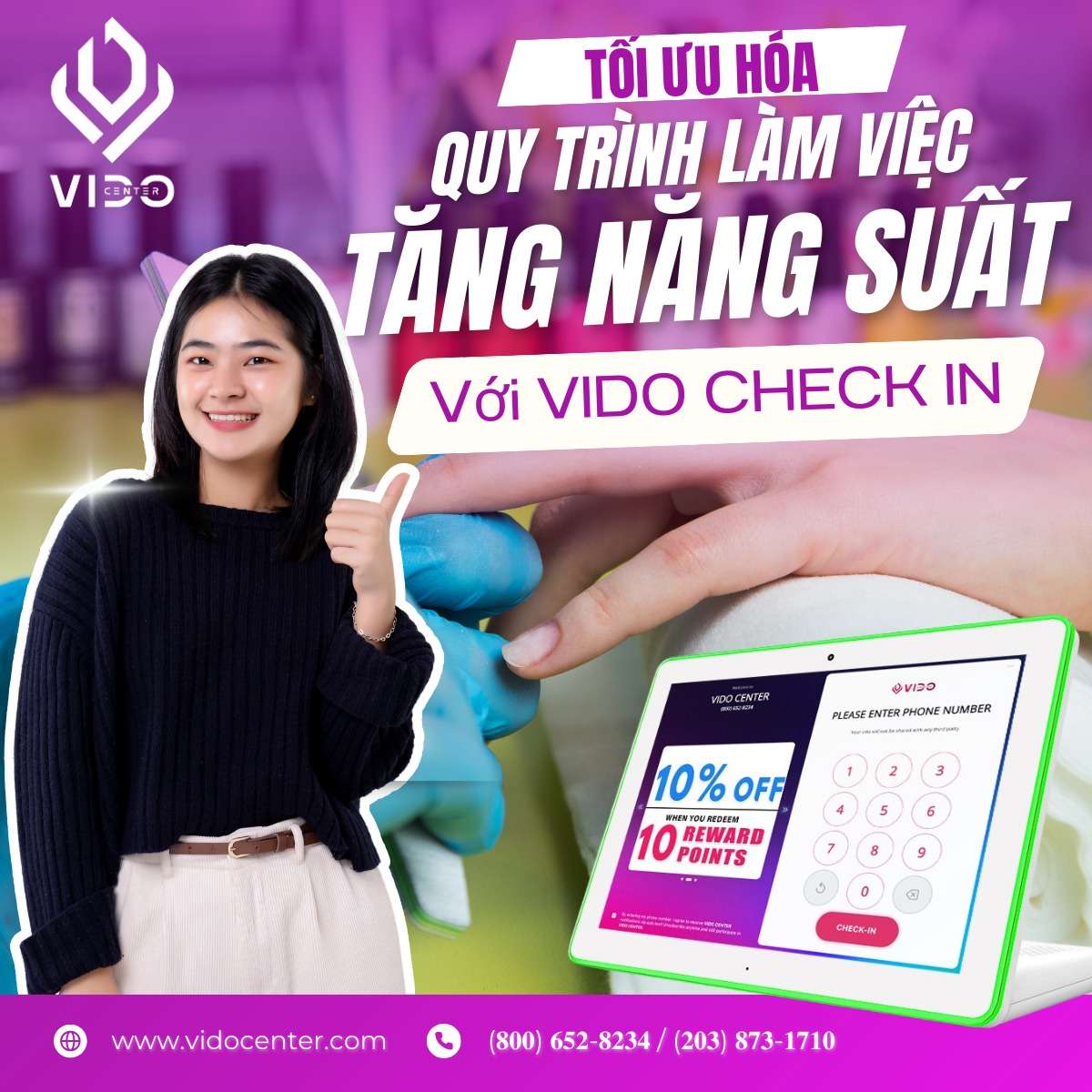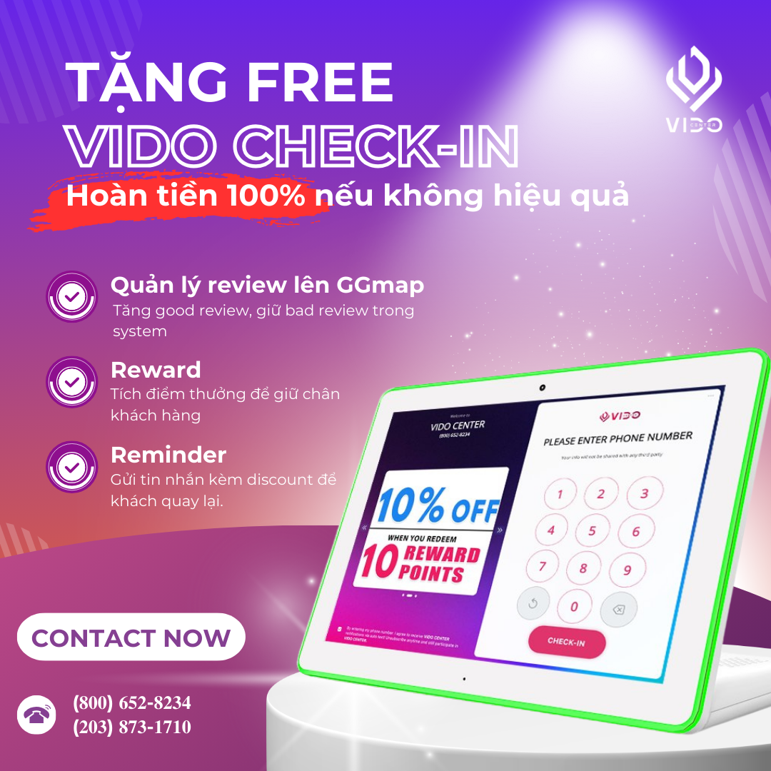 𝐕𝐈𝐃𝐎 𝐂𝐇𝐄𝐂𝐊-𝐈𝐍 có các tính năng nhắc nhở khách hàng quay lại tiệm, gửi khuyến mãi cá nhân hóa và quản lý chương trình tích điểm để khách hàng có động lực quay lại thường xuyên và tận hưởng các ưu đãi hấp dẫn.